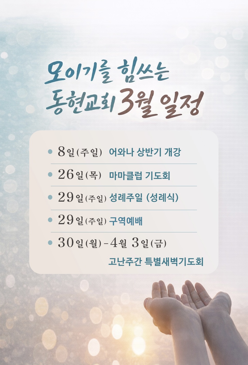 ÇÔ²² ±âµµÇÏ´Â 3¿ù ±³È¸ÀÏÁ¤